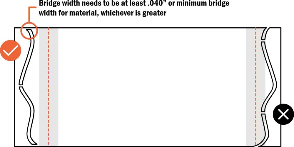 - For materials 0.080” or thicker, it's advisable to keep bridge widths at no more than 50% of the material thickness