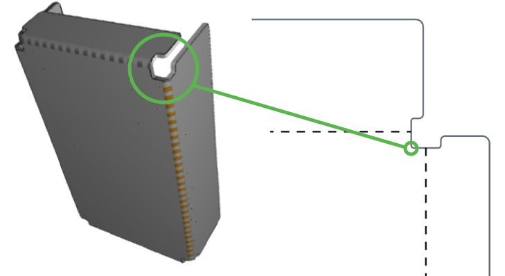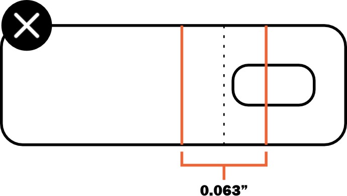 If features fall within the die line of our tooling, you should remove or adjust their location. Refer to each material page to see the die we will use for your chosen material and ensure your cut features are at least half the die’s width away from the bend line