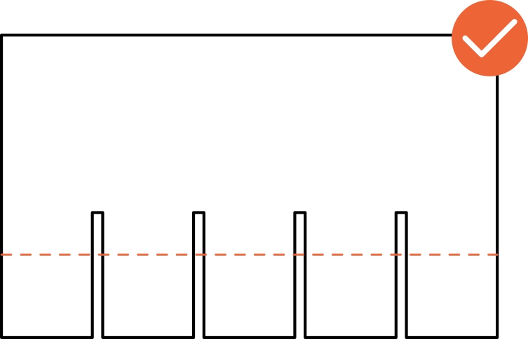 These notches, which are narrow cuts or circles at the corners, should be at least 50% of the material’s thickness in width.