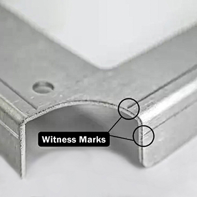- Witness marks from the bending process will be visible. Depending on the material, these marks can become deeper and more noticeable