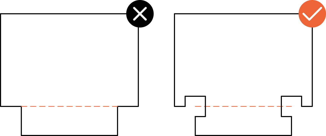 - Your breakoff tab must be sufficiently long relative to your part’s overall flat length.
