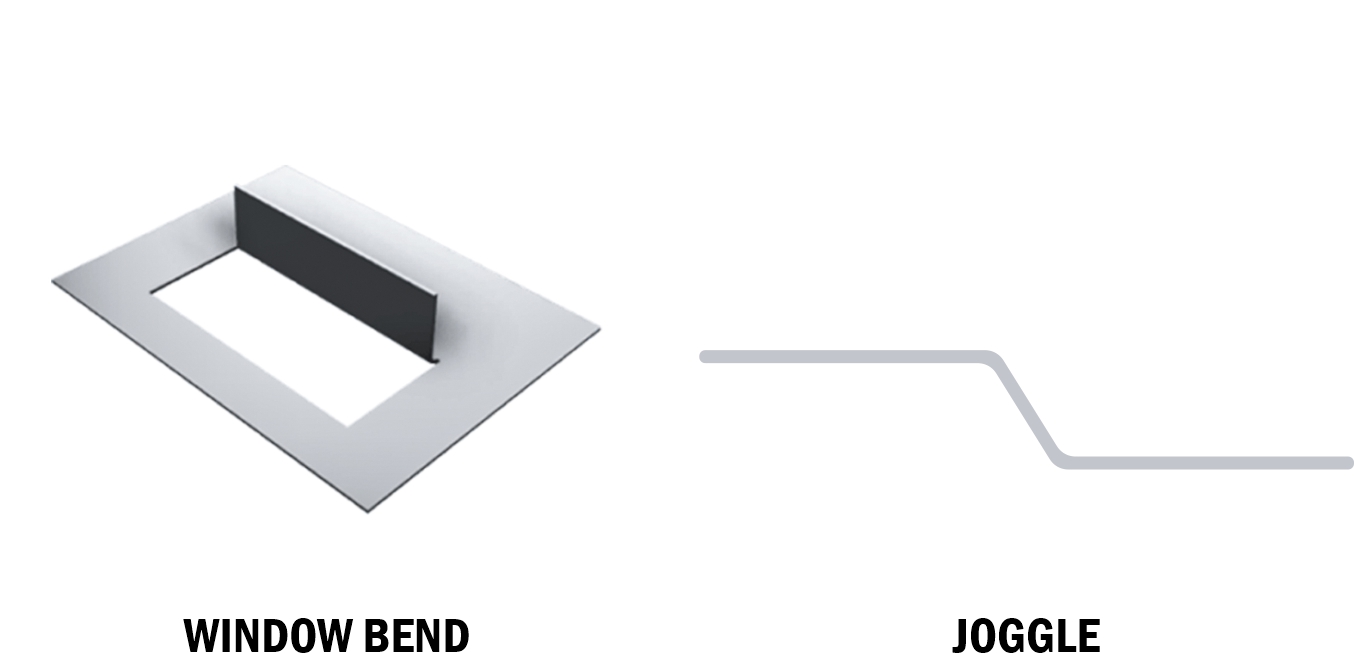 Joggle bends are not available for polycarbonate parts, but we can provide window bends up to 90°.