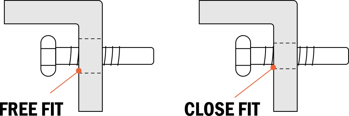 Locate your drill or hardware thread size. The recommended close/free fit will indicate the size of your hole. Use the free fit for a looser connection and the close fit for a tighter one.