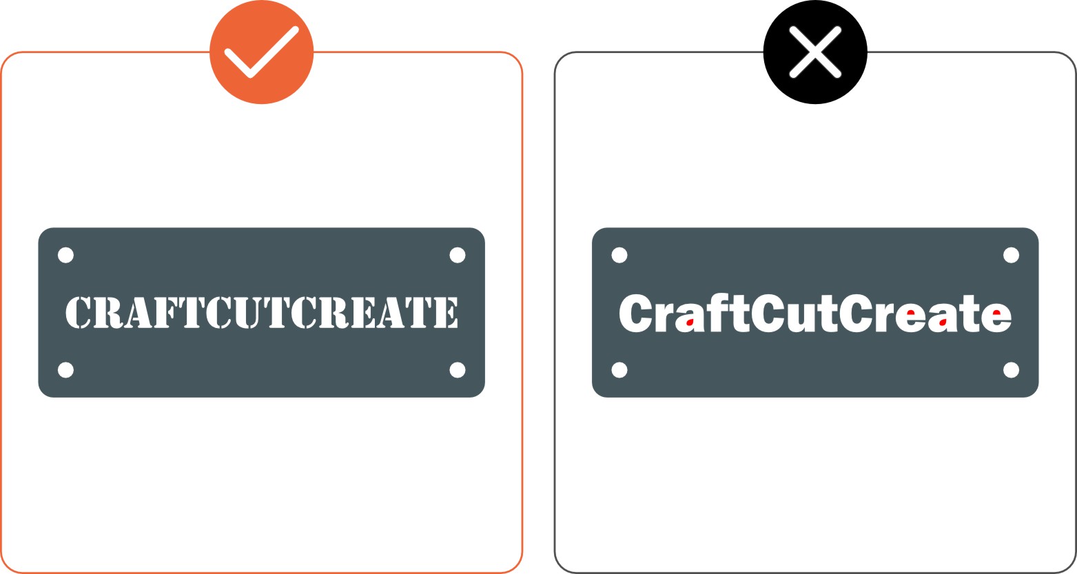 - Shapes and fonts should be stencilized or connected with bridges to ensure they remain intact during cutting.