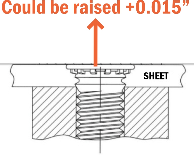 Although our standoffs and studs are designed to be flush, they may be raised by up to .015″ depending on your material selection.