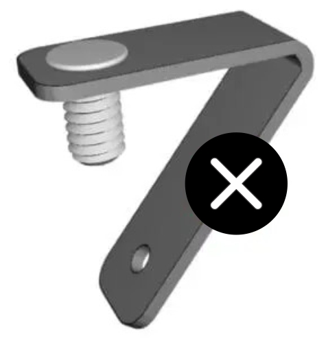 Hardware cannot be installed on parts with acute bends.